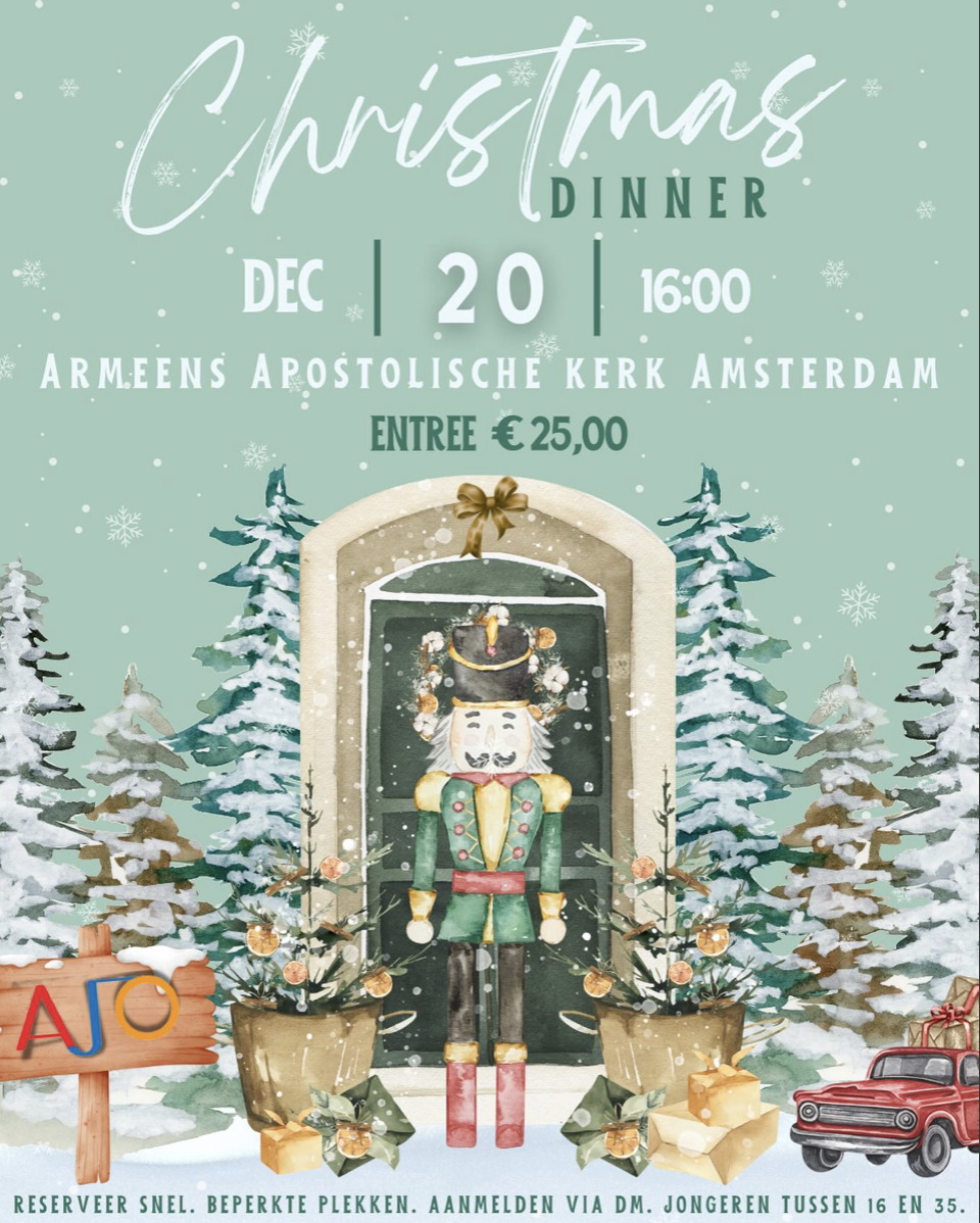 Armeens Apostolische kerk 'Surp Hoki' Amsterdam Krom boomssloot 22, Amsterdam🌟 Kerst met AJO: Een avond vol magie! 🎄🍴 Op zaterdag 20 december nodigen we je uit voor ons gezellige AJO Kerstdiner